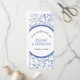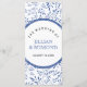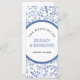Indigo blue leaves pattern wedding program. This lovely wedding template design features a pattern made of blue leaves and your text in a round white frame with blue scalloped outline.