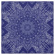 Indigo blue mandala fabric with an elegant lace look lotus flower design that is decorated with whimsical elements.