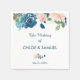 These pretty wedding paper napkins use blue as a primary colour, and embellishes it with touches of pink and peach. The top border is a bouquet image of coral peach and blue roses, with complementary soft green and blue leaves. Below the floral border is your custom text in two shades of blue. A second miniature matching rose image separates the top text from the bottom text. Perfect for spring or summer, these napkins match a variety of wedding products, including invitations, in our store.