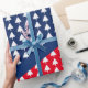 Indigo Blue Red White Christmas Tree Pattern Wrapping Paper