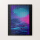 Indigo blue sea pink horizon abstract graphic art jigsaw puzzle