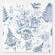 "Indigo Botanical Sketch" is a refined and elegant pattern featuring intricate floral and fern illustrations in soft indigo tones. The design showcases detailed linework that captures the delicate beauty of each flower and leaf, creating a sense of depth and texture. The monochromatic indigo palette against a light background adds a classic and timeless appeal, reminiscent of vintage botanical prints. The pattern exudes sophistication with its carefully composed natural elements.