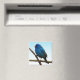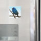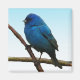 This magnet features the spectacular male Indigo Bunting perched on a branch. This tiny bird is not often seen. He is shy and tends to avoid humans. His habitat is farmland, brush areas, and open woodlands. He has incredibly brilliant iridescent blue feathers and a very sweet song. The female is cute but a dull brown colour.