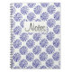 Indigo dark blue striped circle pattern on white notebook