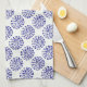 Indigo dark blue striped circle pattern on white tea towel