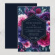 Experience a dramatic and romantic ambiance with this stunning floral composition. Against a deep indigo background, lush peonies and chrysanthemums burst forth in vibrant jewel tones of fuchsia, magenta, and rich purple. Sprigs of delicate foliage add depth, creating a moody and sophisticated botanical masterpiece for a memorable occasion.