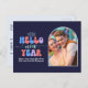 Indigo Gleam New Year Retro Modern Blue Photo Holiday Postcard