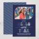 Indigo Horizon Hello New Year Blue Retro Photo Holiday Card