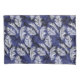 White palm leaves on an indigo blue background, layered with more blue palm fronds.