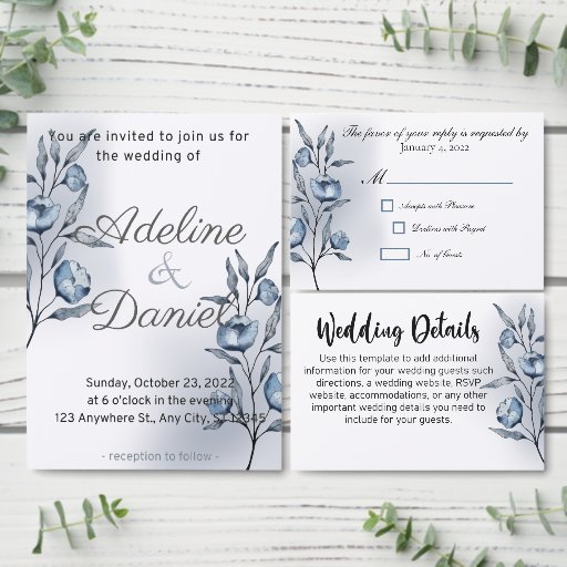 Elevate your celebration with these Indigo Romance Wedding Wine Labels, featuring delicate blue watercolor florals and a serene gradient backdrop that brings modern elegance to every bottle. Personalised with the couple’s names, these labels transform wine into a meaningful keepsake—perfect for reception tables, welcome gifts, bridal party proposals, or favour displays. Designed to coordinate seamlessly with the full Indigo Romance suite, they add cohesion, charm, and a beautifully refined touch to your wedding décor