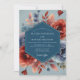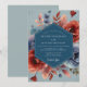 An artistic and moody floral arrangement sets a romantic tone for your special day. A stunning palette of deep indigo and slate blue contrasts with vibrant terracotta, rust, and soft peach. Lush, painterly poppies and delicate botanicals are rendered in a beautiful watercolor style for a dramatic composition.