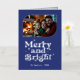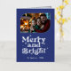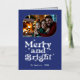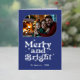 Indigo & Silver Merry and Bright Photo Christmas Foil Holiday Card