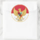 The National emblem of Indonesia is called Garuda Pancasila. The main part of Indonesian national emblem is the Garuda with a heraldic shield on its chest and a scroll gripped by its legs. The shield's five emblems represent Pancasila, the five principles of Indonesia's national ideology. The Garuda claws gripping a white ribbon scroll inscribed with the national motto Bhinneka Tunggal Ika written in black text, which can be loosely translated as "Unity in Diversity". Garuda Pancasila was designed by Sultan Hamid II from Pontianak, supervised by Sukarno, and was adopted as the national emblem on 11 February 1950.