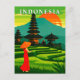 A beautiful postcard featuring the serene temples and rice terraces of Indonesia, bathed in warm tropical sunset light. Perfect for travel enthusiasts and lovers of Southeast Asian landscapes.