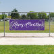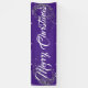 This Holiday banner is shown in the outdoor style with grommets. Select from indoor or outdoor, with or without grommets. Shown in Purple with White "Merry Christmas" fancy script with two Silver looking swirls of stars on each end. Customise or buy as designed.