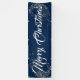 This Holiday banner is shown in the outdoor style with grommets. Select from indoor or outdoor, with or without grommets. Shown in Midnight Blue with White "Merry Christmas" fancy script with two Silver looking swirls of stars on each end.