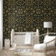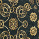 This captivating wallpaper features a striking arrangement of industrial steampunk gears set against a deep black background, creating a dramatic and immersive atmosphere. Ideal for adding an edgy, vintage-inspired touch to any room.