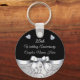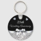 Beautiful Inexpensive Black and Silver 25th Wedding Anniversary Party Favours. PERSONALIZED 25th Anniversary Keychain or Delete Text. You, or CALL Designer Linda: 239-949-9090 EST to CHANGE the Black Background and Silver Grey COLORS of the Background and Text. Wonderful 25th anniversary gifts for guests or cheap 25th anniversary gifts for couple. Choose this inexpensive button style keychain or the Premium silver coloured metal 25th anniversary keychains for more substantial gifts for the couple married 25 years.