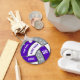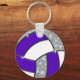 Inexpensive Purple and White Volleyball Keychains with faux Silver Glitter look background. For COLOR, Product or Design CHANGES, Call Designer Linda: 239-949-9090 I can create cheap volleyball gifts for your volleyball party favors, decorations and volleyball team gifts in Your Team COLORS. Free Custom Designing Service by Little Linda Pinda Designs.