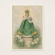 This funeral prayer card features a reverent vintage image of the Infant of Prague clothed in rich emerald vesture with shamrocks, lilies, and ivory roses. The sacred artwork reflects Christian hope and trust in Divine Providence.