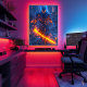 A fearsome cyber warrior emerges from the neon-lit ruins, engulfed in blue and orange plasma energy. His molten katana burns through the darkness, radiating unstoppable power. Clad in high-tech armour fused with fire, this futuristic samurai embodies the fusion of cybernetic warfare and raw elemental fury. A perfect piece for fans of cyberpunk, sci-fi warriors, and dystopian combat aesthetics.