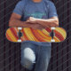 This skateboard features a blazing abstract design with flowing flame-like waves in red, orange, and yellow. The vibrant pattern evokes the energy of a sunset and the heat of motion, making it perfect for skaters who ride with passion and flair.