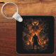A lone warrior faces a towering demon amid a burning wasteland, surrounded by death, dragons, and the shadow of the underworld.
