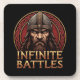 A bold and dynamic design featuring the text "Infinite Battles" in a traditional Viking colour palette of red and gold. The words are arranged in a powerful, angular style, reminiscent of ancient runes. The background is a textured, weathered surface, adding a sense of authenticity and historical significance.