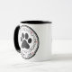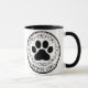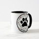 Celebrate the endless bond with your beloved pet with this striking two-tone mug. The design features a bold black paw print encircled by a frame of alternating red hearts and black infinity symbols, with the phrase "INFINITE LOVE" beneath. It's a perfect gift for dog or cat parents, for pet adoption celebrations, or as a loving pet memorial item. The black handle and interior add a stylish contrast to the white ceramic.