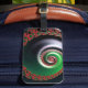 This work features a complex, swirling fractal pattern with a spiral structure that appears to extend infinitely inward. The primary colors are vivid red and lush green, contrasting against a deep, dark background. Along the spiral's path, intricate, smaller fractal shapes repeat, creating a sense of depth and movement. The red fractal elements resemble organic shapes, almost like blooming flowers or curled leaves. The green tones gradually transition to silvery whites closer to the center, adding a glowing effect. Overall, the image evokes a feeling of infinite complexity and dynamic energy.