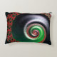 This work features a complex, swirling fractal pattern with a spiral structure that appears to extend infinitely inward. The primary colors are vivid red and lush green, contrasting against a deep, dark background. Along the spiral's path, intricate, smaller fractal shapes repeat, creating a sense of depth and movement. The red fractal elements resemble organic shapes, almost like blooming flowers or curled leaves. The green tones gradually transition to silvery whites closer to the center, adding a glowing effect. Overall, the image evokes a feeling of infinite complexity and dynamic energy.