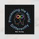 Celebrate unique perspectives with this minimalist, single-line drawing of a human profile. Featuring the rainbow infinity symbol—the global emblem for neurodiversity—and the empowering phrase "Processing the World Differently," this high-contrast design is perfect for those who champion Autism awareness, ADHD pride, and the beauty of a diverse mind. The clean, light blue circular typography and sharp vector style make it a bold statement piece for any collection focused on mental health, inclusion, and cognitive variety.