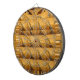 Gold/Golden Brown: The dominant colour, used for both the giraffe motifs and the striped background. Variations in shading and texture within the gold and brown hues add depth and complexity to the design.