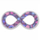 Show your dual pride! The infinity symbol represents all forms of neurodiversity, including autism and ADHD. This cheerful infinity symbol is filled with hearts, stars, rainbows, smiley faces, and polka dots, coloured in the gender-neutral Omni Omnisexual Pride flag's colours — shades of pink, purple, blue, and periwinkle. The glittery texture gives it that extra unique flare — just like you!