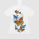 Symbol infinity made of gold, decorated with realistic orange and blue on a white background. Butterfly morpho and Monarch. Design with butterflies.