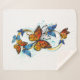 Symbol infinity made of gold, decorated with realistic orange and blue on a white background. Butterfly morpho and Monarch. Design with butterflies.