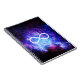 A cool and modern, trendy nebula design featuring a white symbol of the infinity .