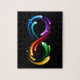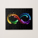 Symbol of infinity is artistically painted with fast moving, bright, luminous, rainbow coloured comets with long flexible tails on black background. Rainbow infinity.