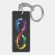 Symbol of infinity is artistically painted with fast moving, bright, luminous, rainbow colored comets with long flexible tails on black background. Rainbow infinity.