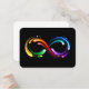 Symbol of infinity is artistically painted with fast moving, bright, luminous, rainbow coloured comets with long flexible tails on black background. Rainbow infinity.