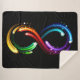 Symbol of infinity is artistically painted with fast moving, bright, luminous, rainbow colored comets with long flexible tails on black background. Rainbow infinity.