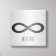 Infinity symbol on brushed metal texture wrapped canvas. Delete or change sample text, font, font colour, font size to your choice. Images can be rotated, deleted or re-sized.