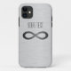 Infinity symbol on brushed metal texture Case-Mate Barely There iPhone 5/5S case/cover. Delete or change sample text, font, font colour, font size to your choice. Images can be rotated, deleted or re-sized.