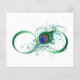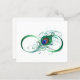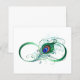 The symbol of infinity with a bright, green, artistic peacock feather on a white background. Tattoo style.