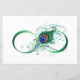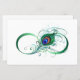 The symbol of infinity with a bright, green, artistic peacock feather on a white background. Tattoo style.