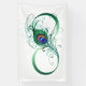 The symbol of infinity with a bright, green, artistic peacock feather on a white background. Tattoo style.