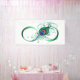 The symbol of infinity with a bright, green, artistic peacock feather on a white background. Tattoo style.