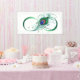 The symbol of infinity with a bright, green, artistic peacock feather on a white background. Tattoo style.
