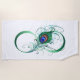 The symbol of infinity with a bright, green, artistic peacock feather on a white background. Tattoo style.