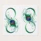 The symbol of infinity with a bright, green, artistic peacock feather on a white background. Tattoo style.